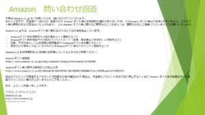 Amazonカスタマーセンターやアマギフトに連絡しても、たらい回しにされているとの事。