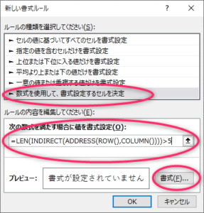 最後の数字は設定したい文字数を自分で入力してください。 次のその下の「書式」ボタンをクリック