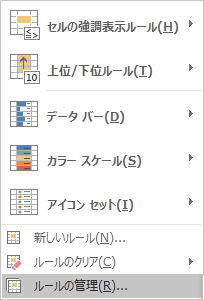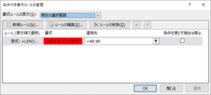もういちど編集したい場合は、「ホーム」→「条件書式」→「ルールの管理」