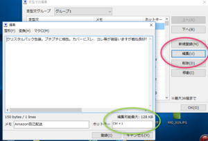 画面右「編集」ボタンをクリックすると、定型文の編集画面が立ち上がります。予めコピペしたい定型文をこちらで編集して下さい。