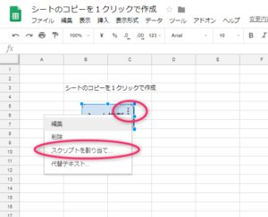 視覚的にわかりやすいようボタンを作成し、押下することでシートの複製を作成するよう作ります。